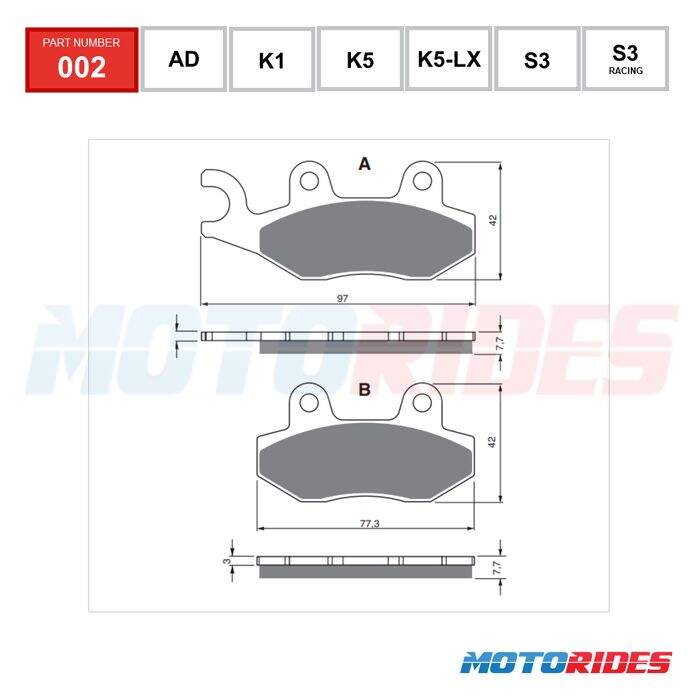 As pastilhas de freio da série S3 são ideais para uso comum em motocicletas Street e também para longas viagens em motocicletas de alta potência (Bikes e Big Trails). É recomendado para pilotos que andam mais e querem um grande poder de frenagem. O composto S3 oferece baixa interação abrasiva com o rotor de freio e uma travagem muito mais tranquila e silenciosa devido ao material de composto cerâmico. Tem uma performance excelente também sob temperaturas mais elevadas. Os materiais de fricção contêm um composto de metal-cerâmica incluindo bronze e grafite, desenvolvidos e aprovados para os mais diversos usos (secos e molhado). Aditivos não metálicos comuns para fricção podem ser aplicados uniformemente sobre a base fina do corpo de bronze da pastilha para atingir ótimas propriedades de fricção.