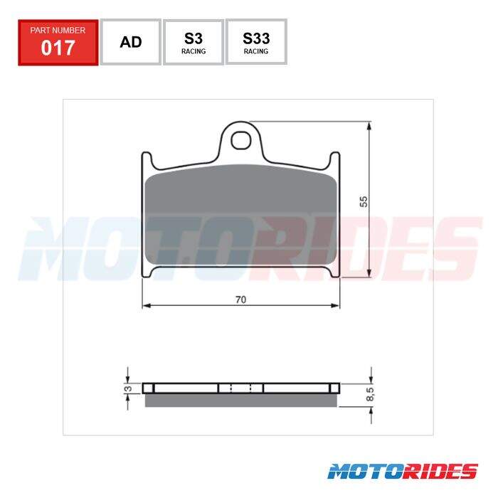 As pastilhas de freio da série S3 são ideais para uso comum em motocicletas Street e também para longas viagens em motocicletas de alta potência (Bikes e Big Trails). É recomendado para pilotos que andam mais e querem um grande poder de frenagem. O composto S3 oferece baixa interação abrasiva com o rotor de freio e uma travagem muito mais tranquila e silenciosa devido ao material de composto cerâmico. Tem uma performance excelente também sob temperaturas mais elevadas. Os materiais de fricção contêm um composto de metal-cerâmica incluindo bronze e grafite, desenvolvidos e aprovados para os mais diversos usos (secos e molhado). Aditivos não metálicos comuns para fricção podem ser aplicados uniformemente sobre a base fina do corpo de bronze da pastilha para atingir ótimas propriedades de fricção.