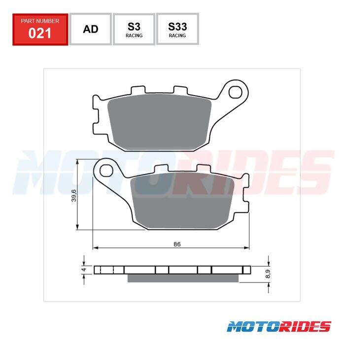 As pastilhas de freio da série S3 são ideais para uso comum em motocicletas Street e também para longas viagens em motocicletas de alta potência (Bikes e Big Trails). É recomendado para pilotos que andam mais e querem um grande poder de frenagem. O composto S3 oferece baixa interação abrasiva com o rotor de freio e uma travagem muito mais tranquila e silenciosa devido ao material de composto cerâmico. Tem uma performance excelente também sob temperaturas mais elevadas. Os materiais de fricção contêm um composto de metal-cerâmica incluindo bronze e grafite, desenvolvidos e aprovados para os mais diversos usos (secos e molhado). Aditivos não metálicos comuns para fricção podem ser aplicados uniformemente sobre a base fina do corpo de bronze da pastilha para atingir ótimas propriedades de fricção.